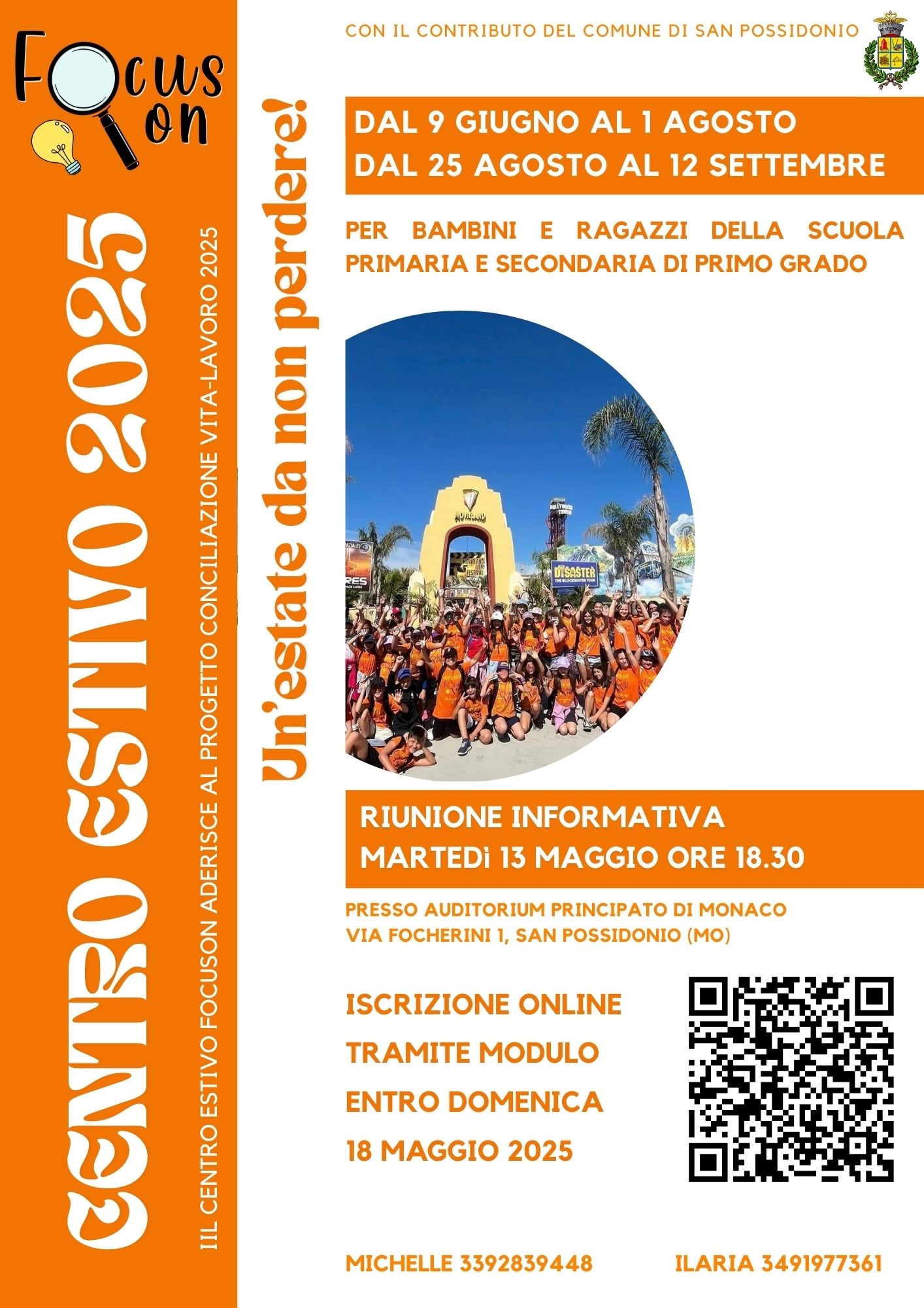 Centro estivo focus on presso Auditorim Via Focherini 1 rivolto a bambini e ragazzi della scuola primaria e secondaria di primo grado.