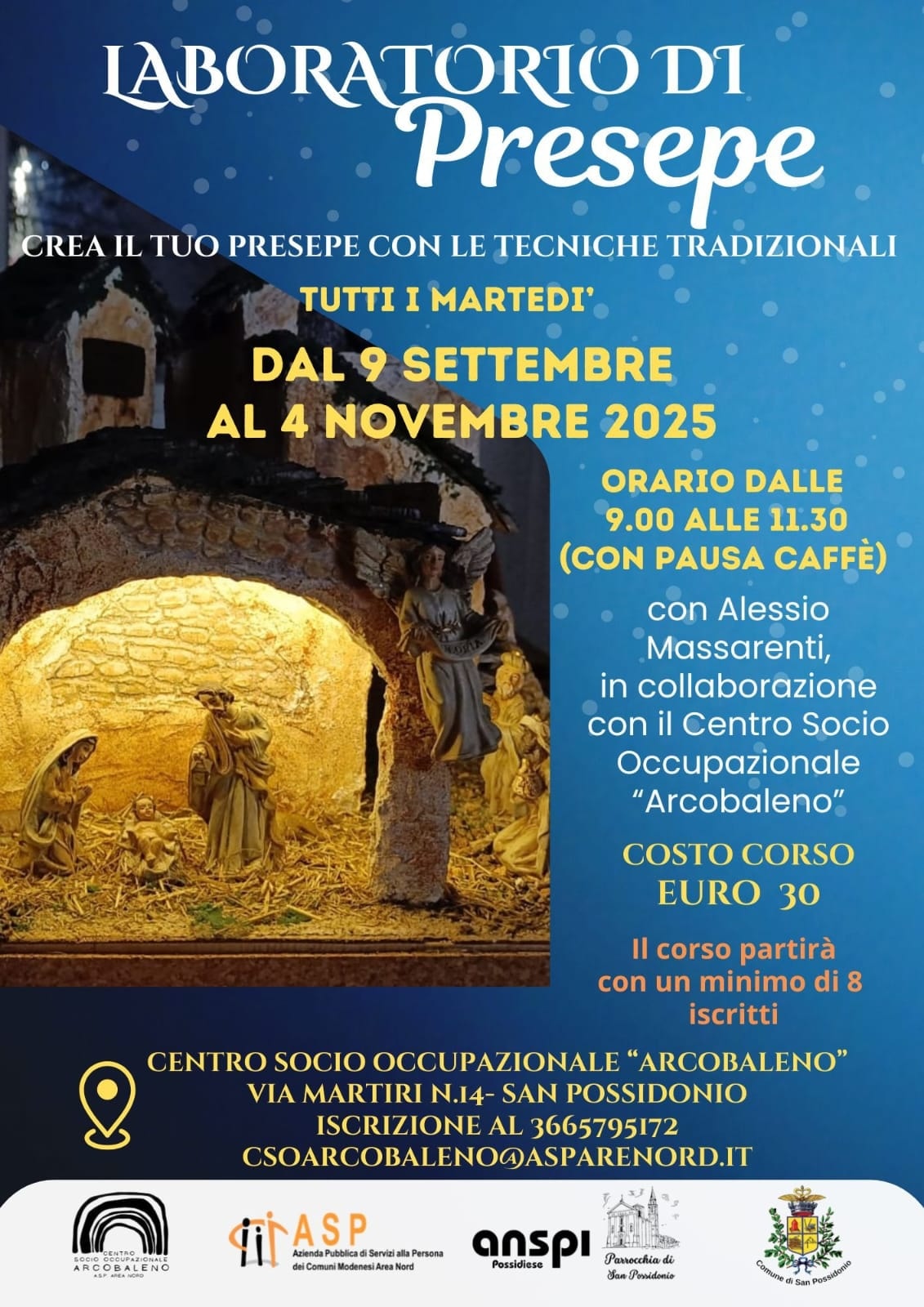 Asp Unione Comuni Modenesi Area Nord organizza il laboratorio di presepe dal 9 settembre al 4 novembre 2025
