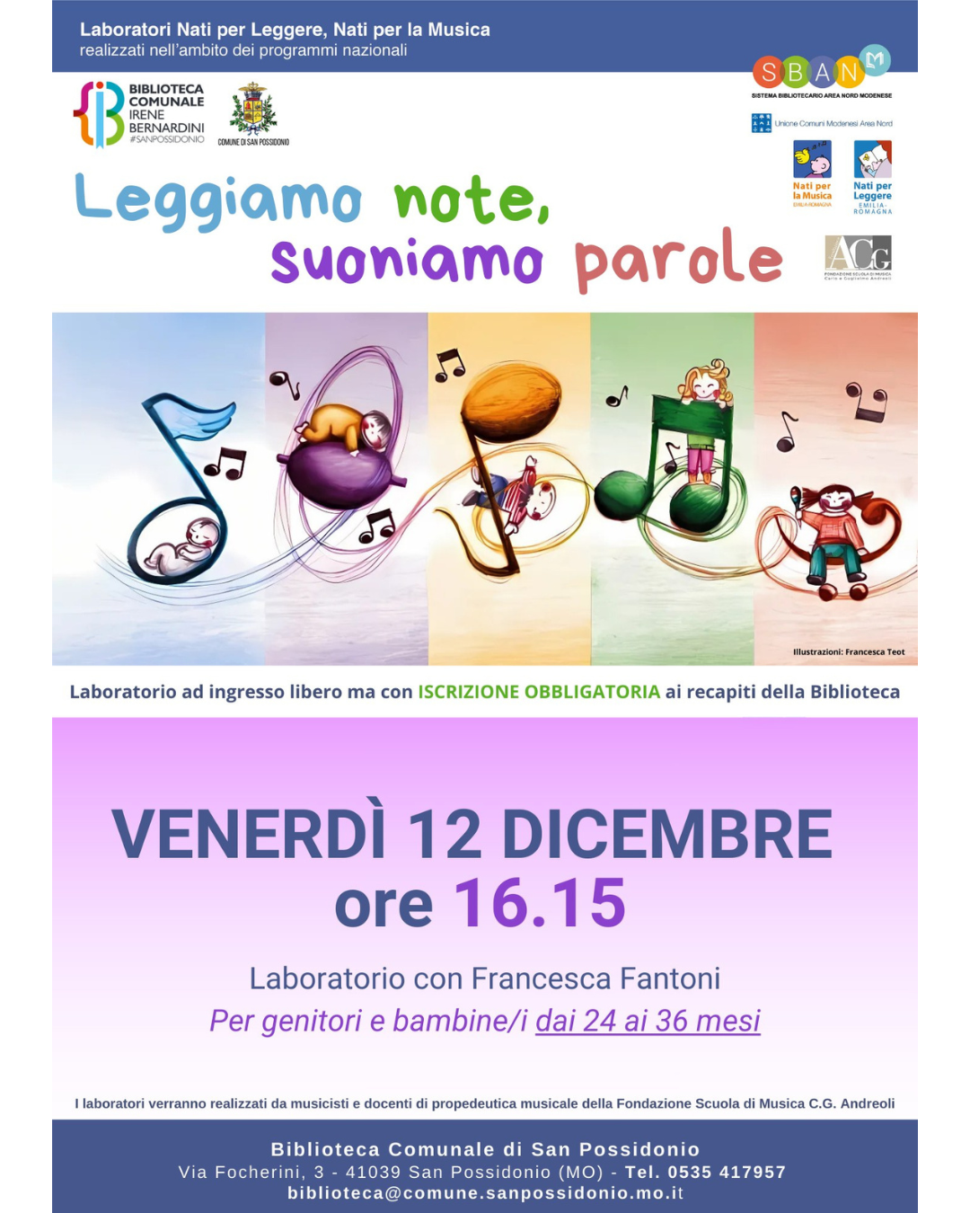 Attività realizzata in collaborazione con il Sistema Bibliotecario Area Nord Modenese e la Fondazione Scuola di Musica Carlo & Guglielmo Andreoli.