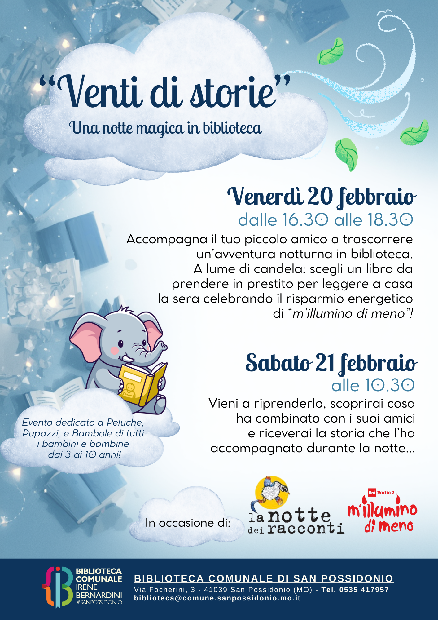 Sabato 21 Febbraio alle 10.30 vieni a riprenderlo, scoprirai cosa ha combinato con i suoi amici e riceverai la storia che l’ha accompagnato durante la notte.