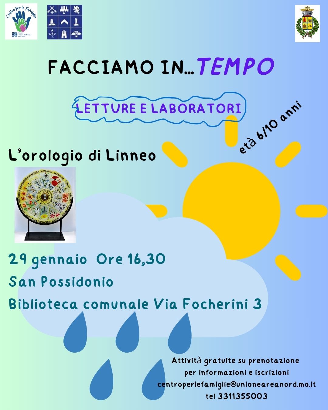 Il laboratorio, intitolato "L'orologio di Linneo", si svolgerà il 29 gennaio alle ore 16:30 presso la Biblioteca comunale in Via Focherini 3.