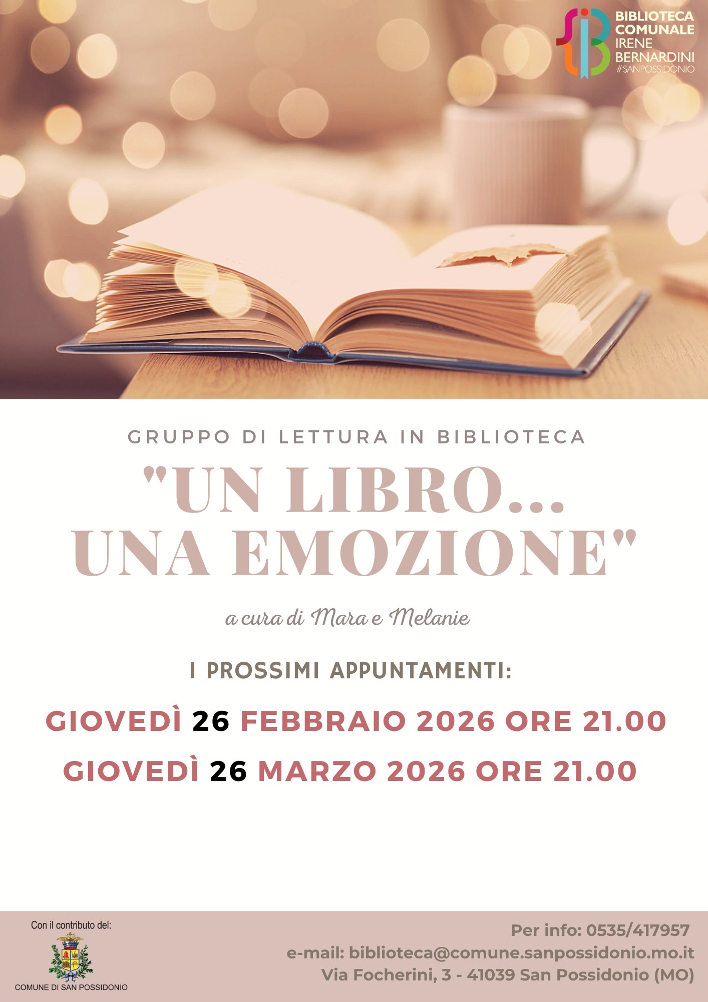 Riprendono Giovedì 26 febbraio alle ore 21.00 gli incontri del Gruppo di Lettura in Biblioteca a San Possidonio.